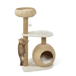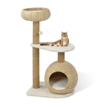 Sowohl die Höhle als auch die StĂ€mme des AniOne Kratzbaums Saki sind aus natĂŒrlicher Wasserhyazinthe gefertigt, die dem Kratzbaum nicht nur sein hochwertiges und zeitloses Aussehen verleiht sondern zudem noch fĂŒr eine hohe LuftdurchlĂ€ssigkeit der Körbe sorgt. Auf den groĂzĂŒgigen LiegeflĂ€chen finden selbst gröĂere Katzen bequem Platz. Die dazugehörigen Liegekissen bestehen aus kuschelweichem PlĂŒsch und sind darĂŒber hinaus einfach abnehmbar und waschbar. So schenkt der AniOne Kratzbaum nicht nur dank seines wunderschönen Aussehens und seiner natĂŒrlichen Materialien lange optische Freude sondern bietet Ihrer Samtpfote auch genau das was sie braucht: Verschiedene kuschelige AussichtsplĂ€tze auf drei verschiedenen Ebenen und robustes, umweltfreundlicheres Sisal fĂŒr ausgiebigen und langanhaltenden KratzspaĂ.