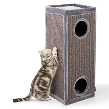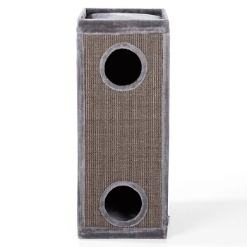 Diese Kratztonne lĂ€sst sich hervorragend in jeden Wohnraum integrieren. Dabei kann diese platzsparend in Ecken platziert werden. Eine Montage ist nicht erforderlich. Die gepolsterten LiegeflĂ€chen laden Ihren Stubentiger zum Ausruhen, Schlafen und Spielen ein. Der rundum verklebte Sisalteppich bietet groĂe KratzflĂ€chen und lenkt das natĂŒrliche KratzbedĂŒrfnis Ihrer Katze von Möbeln auf das Kratzelement um. Die ANIONE Kratztonne Aurelio ist fĂŒr kleine bis groĂe Katzen geeignet.