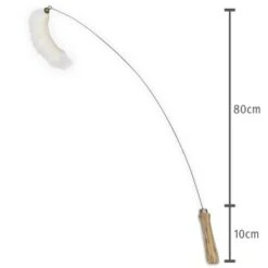 Das interaktive Katzenspielzeug aus Holz enthält einen Stab auf dem eine reizvolle Plüschmaus mit Federschwanz angebracht ist.