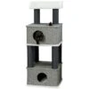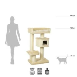 In der Mitte des Kratzbaum befindet sich eine geräumige Höhle mit flauschigem Kuschelkissen, welche zum Schlafen und Dösen einlädt. Der Kratzbaum Portland eignet sich prima zum Spielen, verstecken, aber auch sich zurückziehen und schlummern.