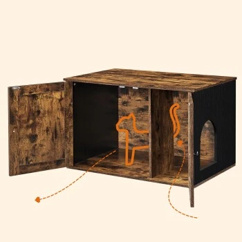 [Stilvolles Katzenklo] Mit seinem rustikalen Stil und den schicken ScheunentĂŒren fĂŒgt sich dieses Katzenklo problemlos in die meisten Wohnstile ein und verwandelt das stille Ărtchen Ihrer Katze in einen echten BlickfĂ€nger [Mehr PrivatsphĂ€re, weniger Geruch] Dank der geschlossenen Konstruktion bietet diese Katzentoilette einen privaten Ort, an dem sich Ihre Katze sicher fĂŒhlt, um ihre Notdurft zu verrichten und es entsteht weniger Schmutz â eine Win-Win-Lösung! [GerĂ€umiger Innenraum] Mit einer GröĂe von 50 x 50 x 46 cm bietet das Hauptfach dieses Katzenschranks genug Platz fĂŒr die meisten Katzentoiletten. Sie können auch die Trennwand entfernen, um die FlĂ€che auf 74,9 x 50 x 46 cm zu vergröĂern [FĂŒr Ihre Katze und Sie] Stellen Sie ein Katzenklo hinein, verwenden Sie es als Beistelltisch oder stellen Sie ein Katzenbett hinein, um einen gemĂŒtlichen Unterschlupf zu schaffen [Kinderleichte Montage] Ihre Katze kann es kaum erwarten, ihr neues MöbelstĂŒck auszuprobieren? Kein Problem, denn mit einer Schritt-fĂŒr-Schritt-Anleitung und beschrifteten Teilen ist dieses Katzenhaus in 20 Minuten fertigFeandrea Hinweise: