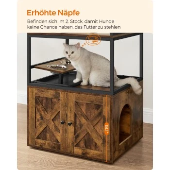 – Passen Sie die verstellbaren Füße an, um das Katzenhaus auf unebenen Böden stabil zu halten.
