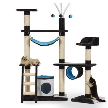 Eine integrierte Leiter sorgt fĂŒr höchsten KletterspaĂ und ermöglicht selbst Ă€lteren oder kranken Katzen einen leichten Auf- und Abstieg. Ein weiteres besonderes Highlight ist die Angel mit PlĂŒschbĂ€llen auf der obersten Plattform, die den Spieltrieb Ihrer Katze fördert. FĂŒr eine optimale Krallenpflege ist ebenfalls bestens gesorgt, denn die mit Natursisal umwickelten SĂ€ulen unterstĂŒtzen den natĂŒrlichen Kratztrieb. Durch das moderne und unauffĂ€llige Design lĂ€sst sich dieser Kratzbaum in jede Wohnumgebung integrieren.