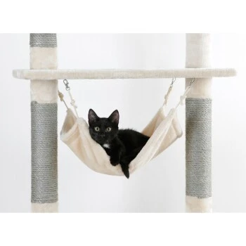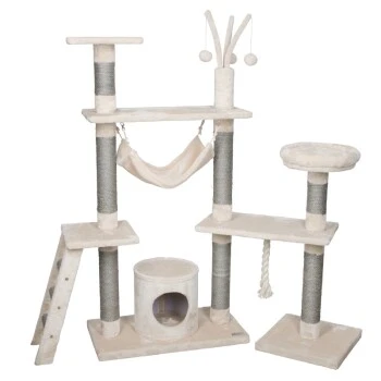 Der Kratzbaum Creative Adventure ist ein toller Spielplatz für Ihre Lieblinge. Plüschbälle, Hängematte, Durchschlüpfe und Seile laden zum Spielen ein. Hier bleiben keine Wünsch offen. Eine kleine Höhle bietet zudem einen Rückzugsort zum Ausruhen. Die Säulen sind mit Sisal verklebt, damit Ihr Liebling seine Krallen perfekt schärfen kann. Die drei Plüschbälle sorgen außerdem für zusätzlichen Spielspaß.