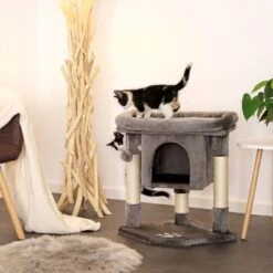 - KOMFORTZONE FÜR IHRE KATZE. Dieser Katzenkratzbaum aus weichem Plüsch schafft die ideale Umgebung für jede Samtpfote. Der Kratzturm garantiert artgerechtes Spielen, Ausruhen und Verstecken. Die Abwechslung zählt!