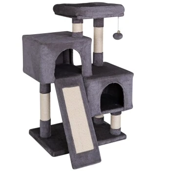 - IDEALES SPIEL- UND RUHEPARADIES. Die vortreffliche Ausstattung dieses Katzenbaumes mit 2 Höhlen und einem Plüschball mit Glöckchen befriedigt den Spieltrieb Ihrer Katze. Das gemütliche Liegebett unterstützt zusätzlich die benötigten Ruhephasen und auch das beliebte Beobachten kommt nicht zu kurz. Die perfekte Balance zwischen Spielspaß und Rückzugsmöglichkeiten.
