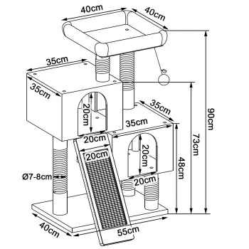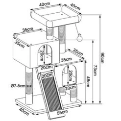 - MAßE UND FARBEN. Dieses hochwertige Katzenzubehör verfügt über die Maße 55 x 40 x 90 cm, die Höhlen über 35 x 35 x 25 cm und das Plateau 35 x 35 cm. Das langlebige Katzenspielzeug ist in den Farben Hellgrau und Dunkelgrau erhältlich.