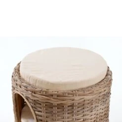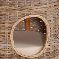 Die harmonische Farbgebung und Natürlichkeit des hier verwendeten Rattangeflechts spricht Tier und Mensch an. In den drei, voneinander getrennten Höhlen, laden weiche Kissen zu einem Nickerchen ein. Auf dem Turm kann es sich der Beobachtungsposten ebenfalls auf einem Kissen gemütlich machen. So ist der Katzenturm auch für mehrere Katzen ein praktisches Wohnmöbel. Der Bezug der Kissen ist Dank dem eingearbeiteten Reißverschlusses abnehmbar und für Handwäsche geeignet. Die Eingänge haben jeweils einen Durchmesser von ca. 17 cm.