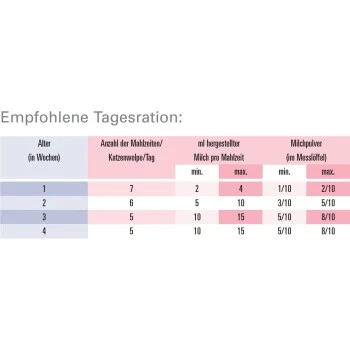 KĂ€tzchen benötigen in den ersten Lebenswochen eine richtige ErnĂ€hrung, um gesund heranwachsen zu können. Reicht die Muttermilch aufgrund einer hohen WurfgröĂe nicht aus oder verweigert die Katzenmutter das SĂ€ugen, sollte Milchersatz den Katzenwelpen zugefĂŒttert werden.
