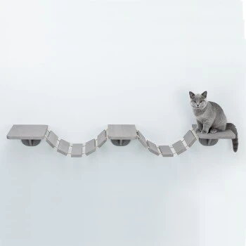 Die Kletterleiter fĂŒr Katzen kann abwechslungsreich mit anderen Elementen zu KletterwĂ€nden und -pfaden kombiniert werden. DarĂŒber hinaus genieĂt Ihre Samtpfote eine tolle Aussicht: auf 3 Plattformen und zwei beweglichen BrĂŒckenelementen kann sie ihr „Reich“ beobachten oder sich dort entspannen. Aufgrund der Tatsache, dass die Kletterleiter an der Wand fixiert wird, ist sie platzsparend und kann zusĂ€tzlich als Verbindung zu anderen Kratzartikeln wie KratzbĂ€umen oder SĂ€ulen genutzt werden.